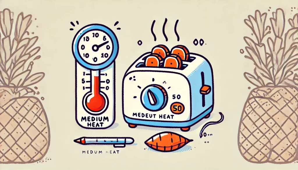 トースターの温度設定が可能な場合、目安は160〜180℃。高すぎると外側が焦げてしまい、中まで火が通る前に皮がパリパリになります。逆に低すぎると時間がかかりすぎて、水分が飛びすぎてパサつく原因に。